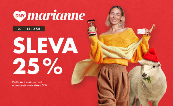 Dny Marianne jsou tady! Vyhoďte si z kopýtka a užijte si nákupy díky 25% slevě ve Dnech Marianne.