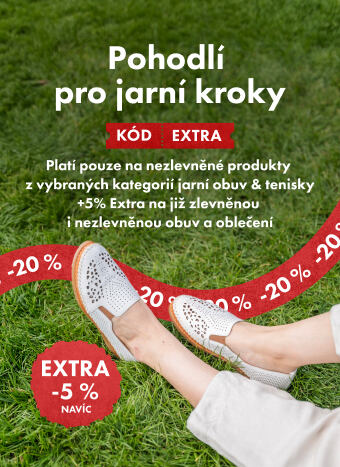 👟 -20 % na nezlevněnou a -5 % na zlevněnou jarní a letní obuv a tenisky | -5 % na oblečení 🔖 Kód: EXTRA | Neplatí na vybrané zboží 💤 Až -30 % na lůžkoviny