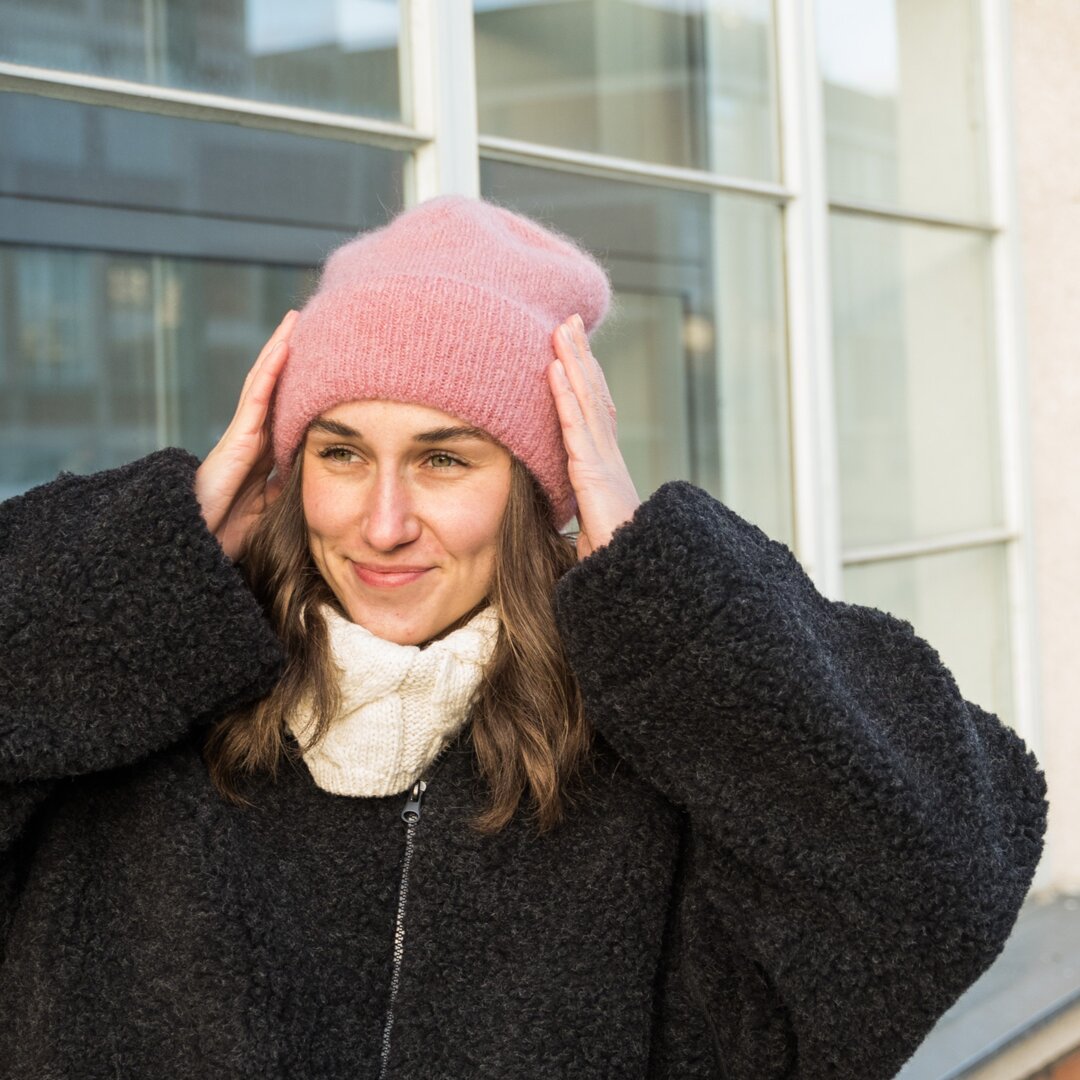 Nadýchaná čepice s nejjemnějšího mohéru je jako hřejivý obláček vlny. Podšívka z Merino vlněného úpletu slouží k zesílení okraje čepice, který tak více hřeje a pomáhá čepici držet tvar.